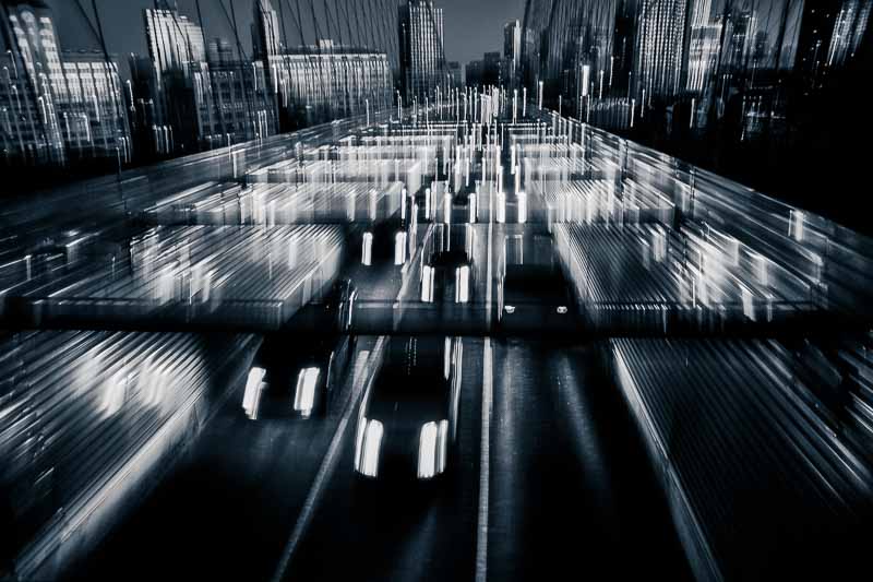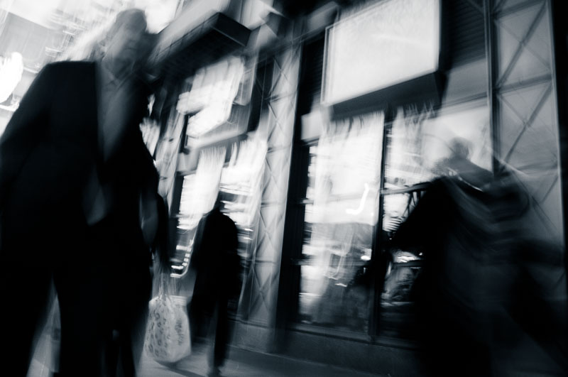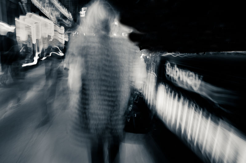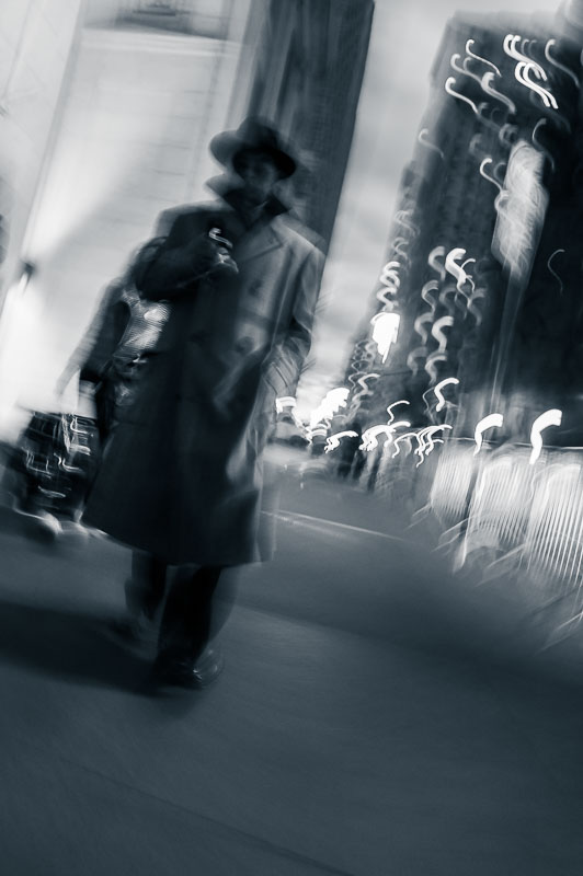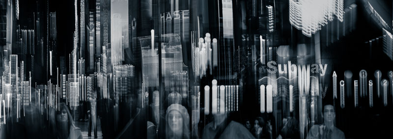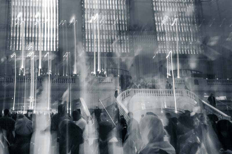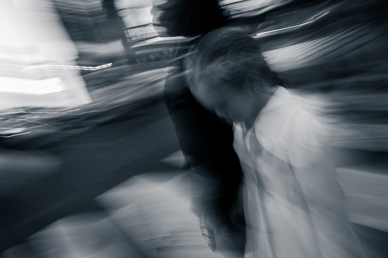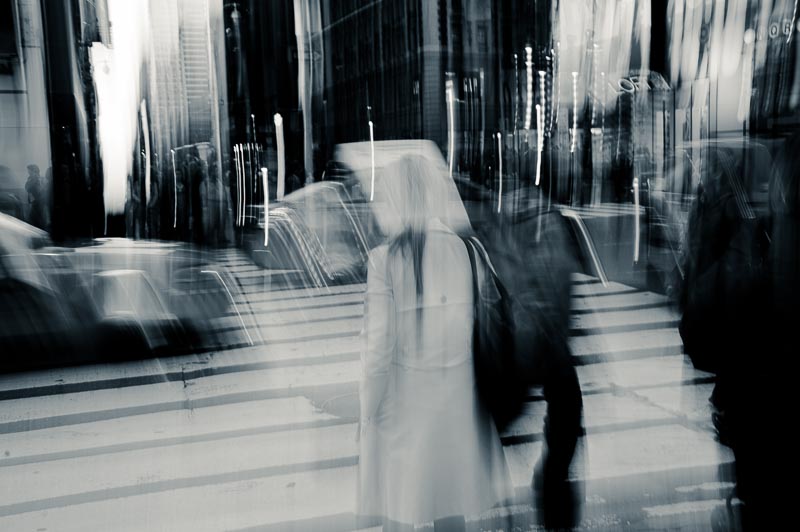 I luoghi iconici iniziano lentamente a smaterializzarsi sotto i miei occhi, le strade diventano popolate da fantasmi e comparse. Mentre li fotografo, nel rendermi conto di essere io stesso una comparsa in questo flusso di energia, il mio unico pensiero è di accelerare, senza soffermarmi.
